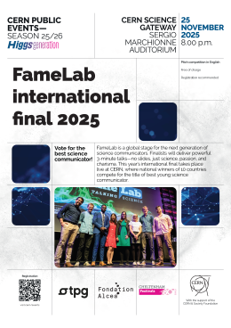 Cette année, la finale internationale se déroulera au CERN. Les finalistes, sélectionnés lors de concours nationaux dans le monde entier, s'affronteront en direct pour remporter le titre de meilleur jeune communicateur scientifique. Venez voter !