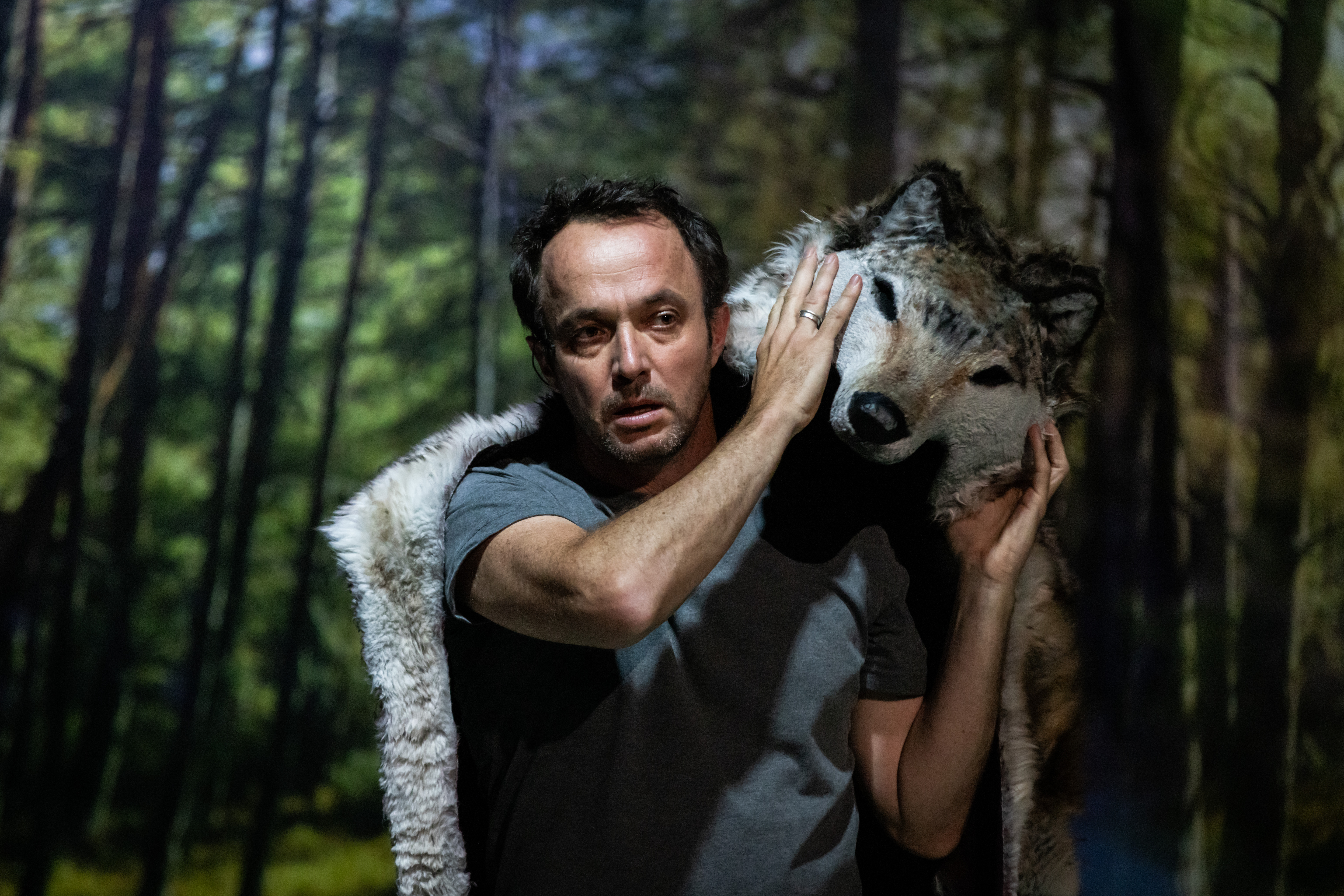 Chez Charles Perrault, le Petit Chaperon rouge est une évaporée crédule qui, s’il fallait résumer les choses à la hussarde, mérite ce qui lui arrive: c’est un peu sa faute quand même si elle et sa grand-mère finissent sous les crocs d’un prédateur. La version des frères Grimm, en revanche, se conclut de façon plus subversive, puisqu’un chasseur extrait les victimes du ventre du loup, que celles-ci se vengent en tuant l’animal, et que plus tard, un autre loup fera les frais de la mamie et de la fillette coalisées pour lui tendre un piège ! C’est à cette version-là, ode aux forces de l’enfance et de la solidarité féminine, que Das Plateau rend hommage, à l’aide de tableaux paysages mêlant texte, musique et vidéo.